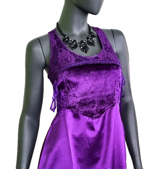 Aufgrund der Einheitsgröße passt dieses Kleidungsstück praktisch jeder Frau, während das schlichte Design ohne Muster den Fokus auf die hochwertige Verarbeitung und die exquisite Farbgebung lenkt. Ob für thematische Veranstaltungen oder als außergewöhnliches Abendkleid – dieses Maxikleid ist eine zauberhafte Ergänzung für jede Garderobe. Leichtes Frühjahr/Sommerkleid. Leicht glänzend. Samteinsatz und seitliche Schnürung. Gehschlitz.Länge mit Trägern ca.133 cm.