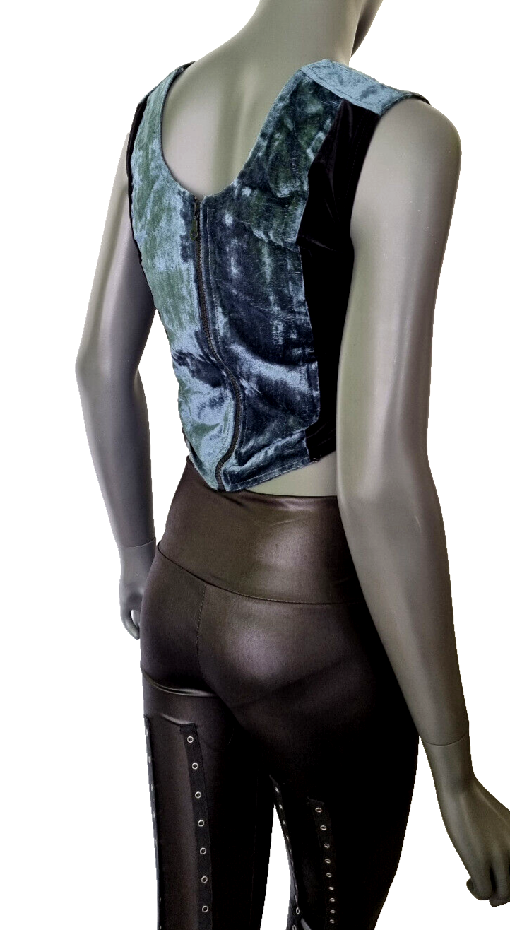 Corsagentop Samt Gothic Punk Medieval Witch petrolblau Gr.36 kleine 38