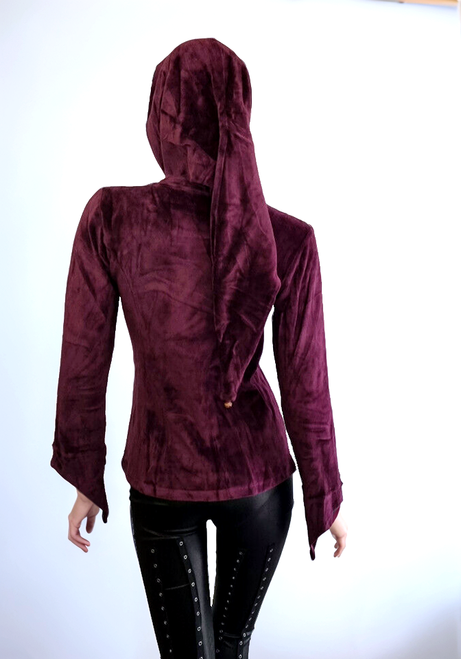 359 Der Gugel Nickisweater in mittelalterlichem Gothic-Pixie-Stil ist ein Must-Have für alle Larp- und Rockliebhaberinnen. Der Pullover in Größe 34/36 (kleine 38) von der Marke bäres besticht durch sein einzigartiges Design und die violette Farbe. Hergestellt aus Baumwolle ist dieser Pullover ein modisches Statement für Damen, die auf der Suche nach einem besonderen Kleidungsstück sind. Perfekt für den Alltag oder für besondere Anlässe - ein vielseitiges Stück für die Garderobe! Kleine Schelle an der Kapuzenspitze. Brustbreite 45 bis 49 cm. Länge ab Schulter ca.59 cm.