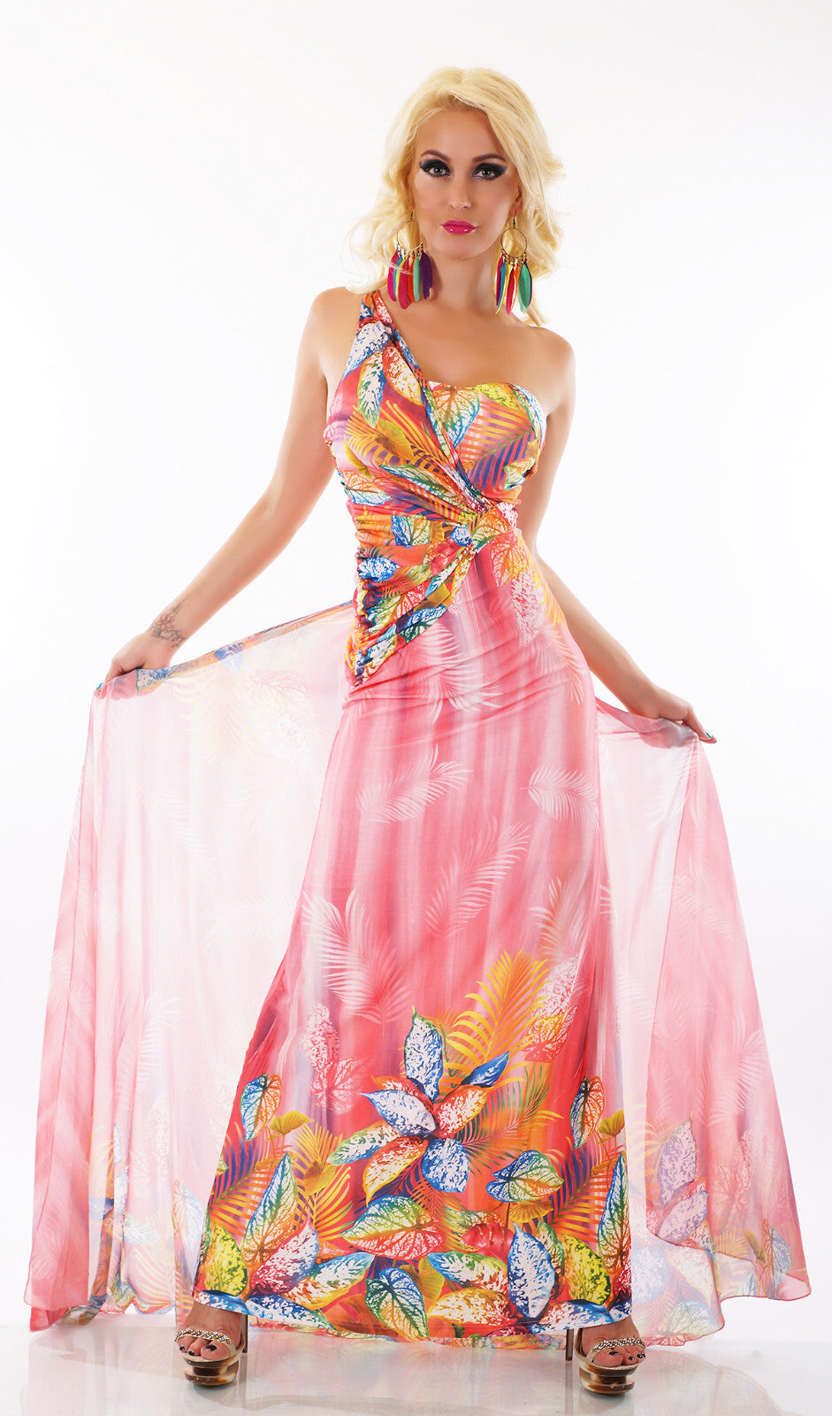 Wunderschönes Maxikleid mit angesetzter Schleppe. Brustteil mit leichten, vorgeformten Cups. 95% Polyester, 5 % Elasthan. Gesamtlänge ca.152 cm.