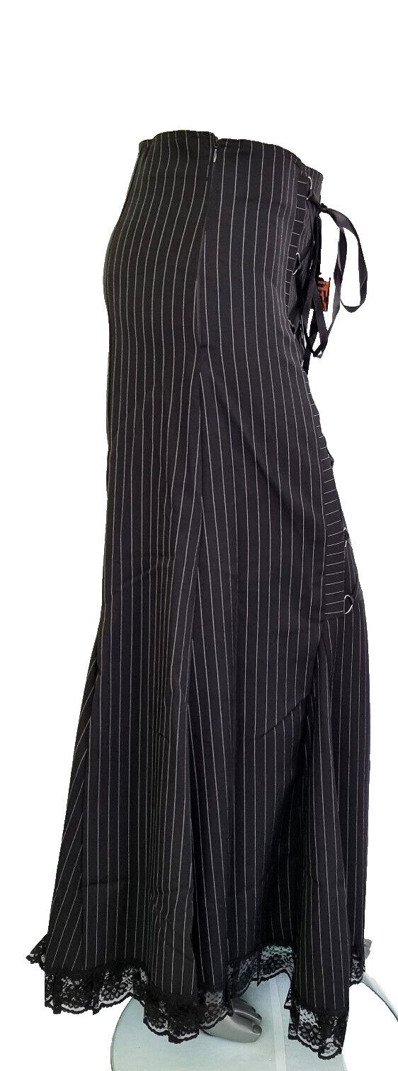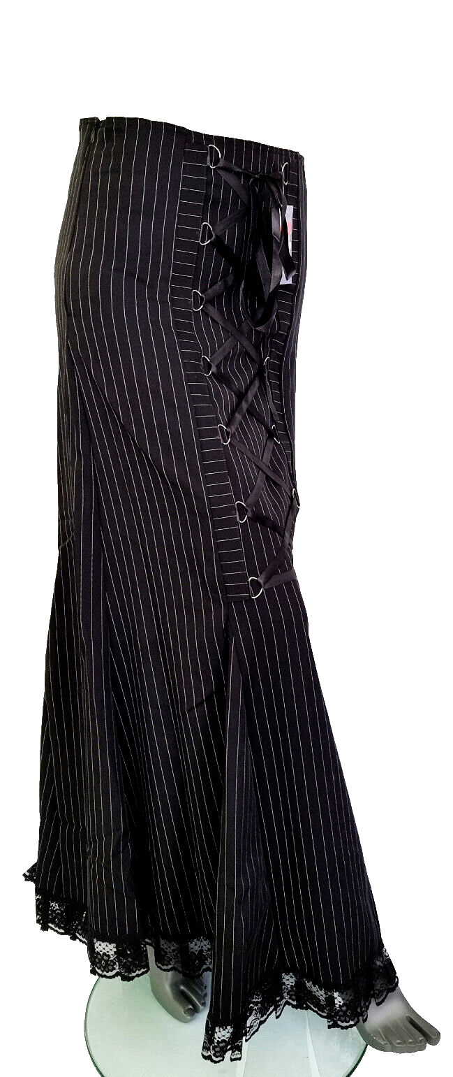 Der Maxirock Nadelstreifen mit Corsagenschnürung verleiht Ihrem Look einen Hauch von Gothic, Witch, Punk oder Larp-Style. Der Rock in Onesize passt perfekt für Größen 34-38 und ist sowohl für den Alltag als auch für besondere Anlässe geeignet. Mit seinem Reißverschluss-Verschluss und dem langen Schnitt aus Polyester ist er ein vielseitiges Kleidungsstück für modebewusste Damen. Länge ca.104 cm. Bundweite ca.39-41 cm. Rote Nadelstreifen !