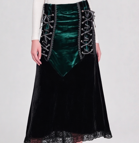1459 Maxirock Samtrock Corsagenrock im Gothic Witch Punk Larp Stil für Damen in Größe 34-38. Schwarz-grüner Rock , perfekt für einen düsteren und auch edlen Look. Ein Must-Have für alle, die sich gerne extravagant kleiden und ihren individuellen Stil betonen möchten. Ideal für besondere Anlässe oder den Alltag, um sich von der Masse abzuheben und einen bleibenden Eindruck zu hinterlassen.Polyester. Länge ca.100 cm.