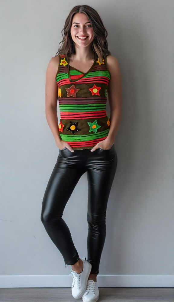 Das Razor Cut Damen Top Ethno Nepal Flower Hippie Boho in Größe 36/38 ist ein echter Eyecatcher. Das bunte Mehrfarbig-Design und die ethno-inspirierten Blumenmuster machen dieses T-Shirt zu einem Must-Have für alle Boho-Liebhaberinnen. Das T-Shirt besteht aus 100% Baumwolle und ist somit sehr angenehm zu tragen. Die Kurzarm-Ärmel und der Basic-Stil machen es zu einem perfekten Alltagsbegleiter. Hergestellt wurde es in Nepal und ist somit auch ein Fair-Trade-Produkt. Einheitsgröße.