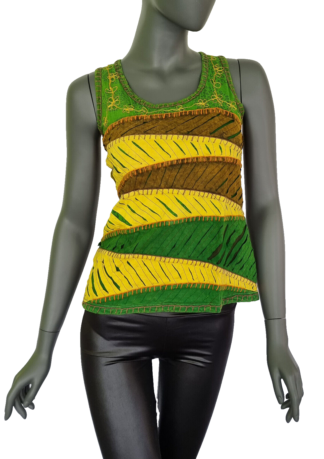 Das Razor Cut Damen Top Ethno Nepal Flower Hippie Boho in Größe 36-40 ist ein echter Eyecatcher. Das bunte Mehrfarbig-Design und die ethno-inspirierten Blumenmuster machen dieses T-Shirt zu einem Must-Have für alle Boho-Liebhaberinnen. Das T-Shirt besteht aus 100% Baumwolle und ist somit sehr angenehm zu tragen. Die Kurzarm-Ärmel und der Basic-Stil machen es zu einem perfekten Alltagsbegleiter. Hergestellt wurde es in Nepal und ist somit auch ein Fair-Trade-Produkt. Einheitsgröße. Hinten unifarben.