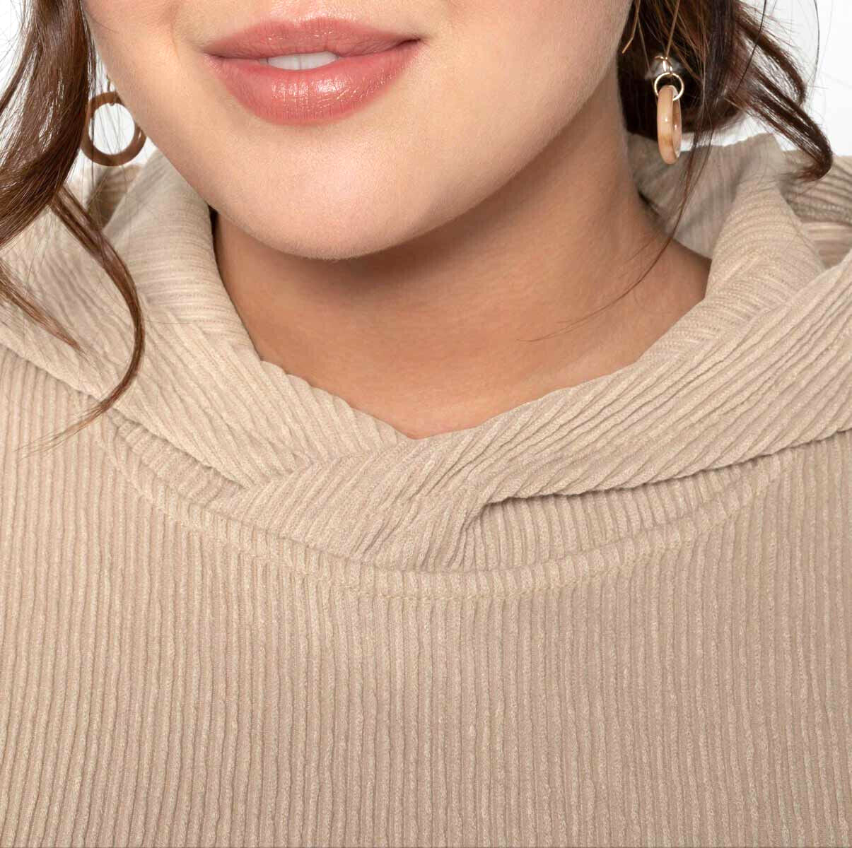 Sheego Longsleeve Struktur Kapuzenshirt Hoodie camel Gr. 48/50