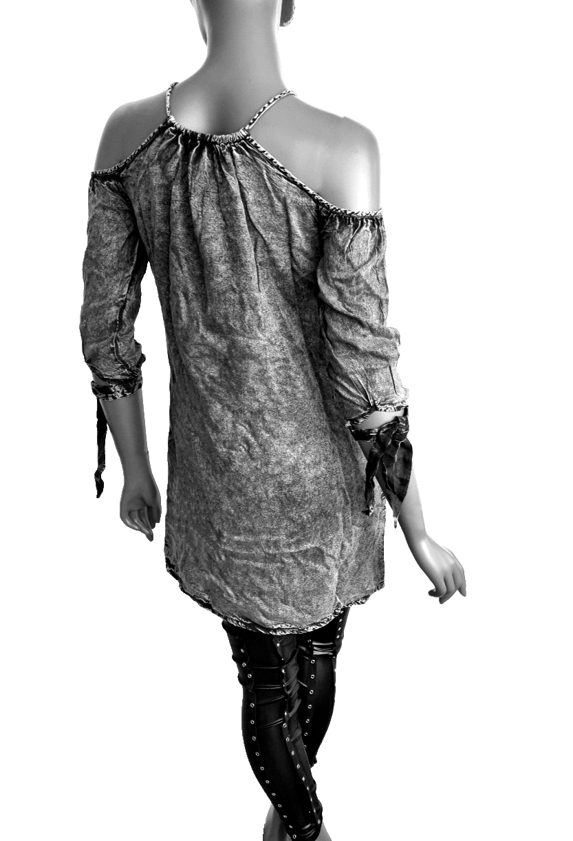 Definitiv ein Eyecatcher mit besonders modischer Attitüde! Schulterfreies Kleid „Eden„ von Superdry in modischer Denim-Optik. Figurumspielende, gerader Form mit gerafftem Rundhalsausschnitt, schmalen Trägern und seitlichen Eingrifftaschen. Die langen Ärmel mit Manschetten und Schleifenbändern vervollständigen das trendige Design. Metall-Logo-Badge vorn am Saum. Länge ca. 91 cm. Leichte,weich fließende Qualität aus 100% Lyocell. Brustweite von Achsel zu Achsel 49 cm.