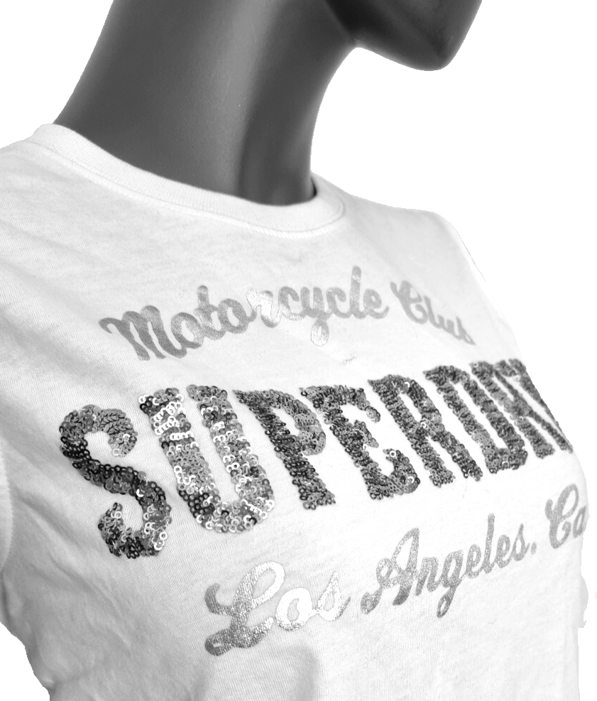Tauchen Sie ein in den Vintage-Stil mit diesem Superdry Kurzshirt, das durch sein ansprechendes Design in Weiß und auffällige Pailletten besticht. Ideal für Damen, die Wert auf einen klassischen Look mit einem modernen Twist legen, bietet dieses T-Shirt in Größe XL/40 eine perfekte Passform und den Komfort einer Baumwollmischung.